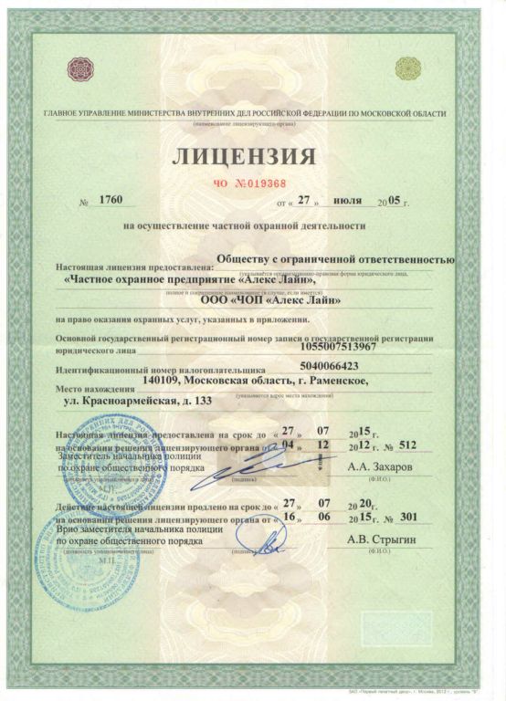 С 2001 года ООО «ЧОП «Алекс +» (ИНН 5040051949)